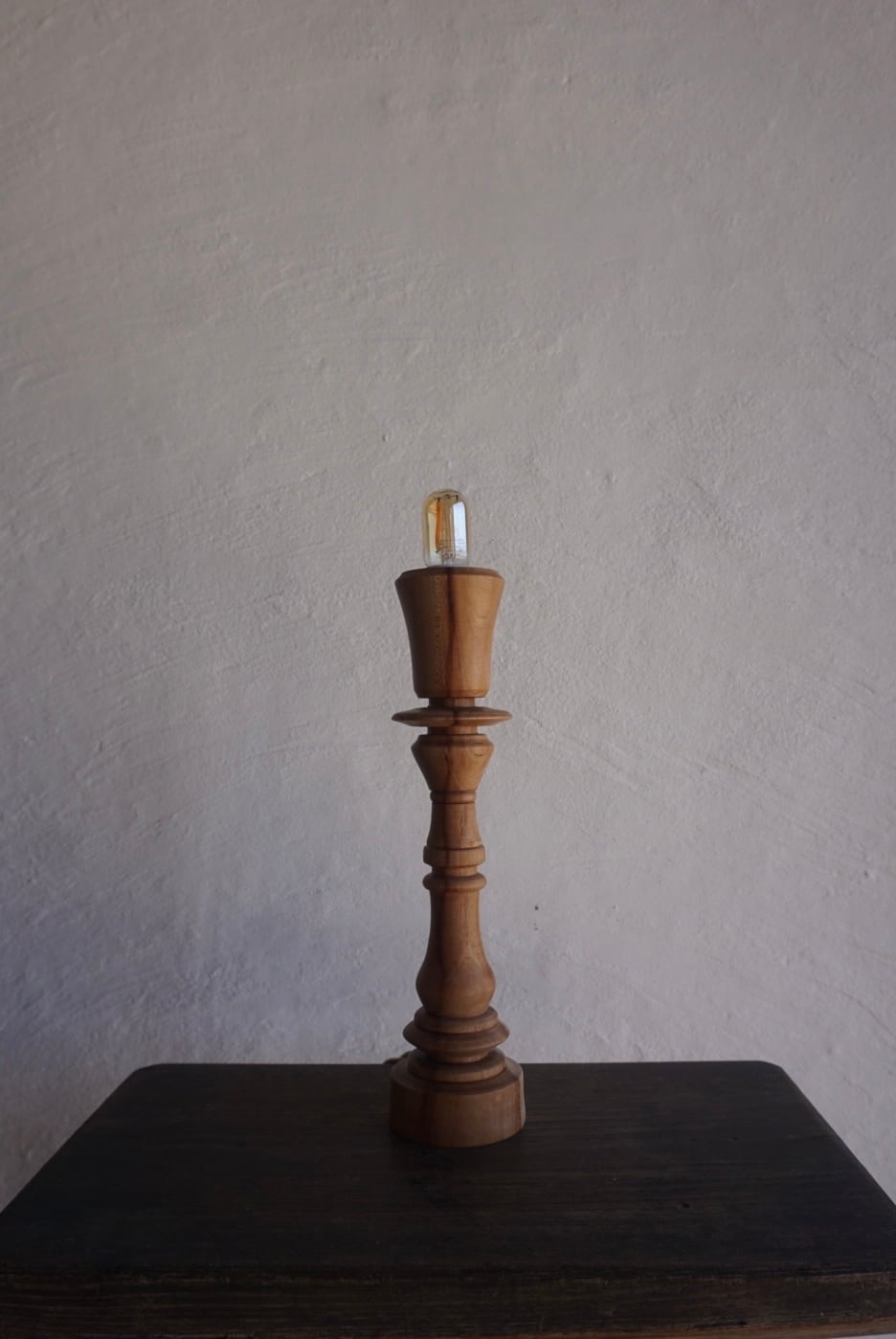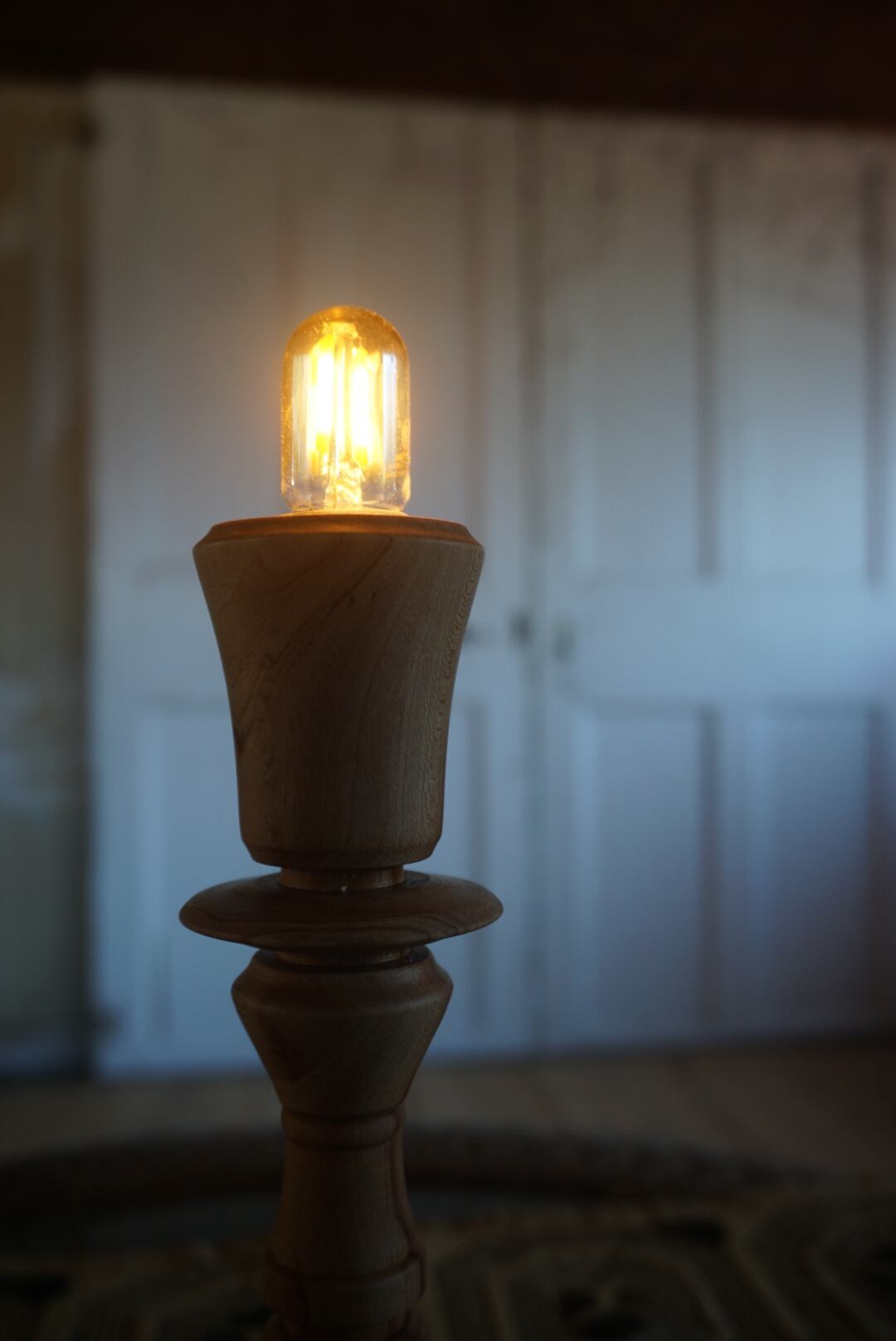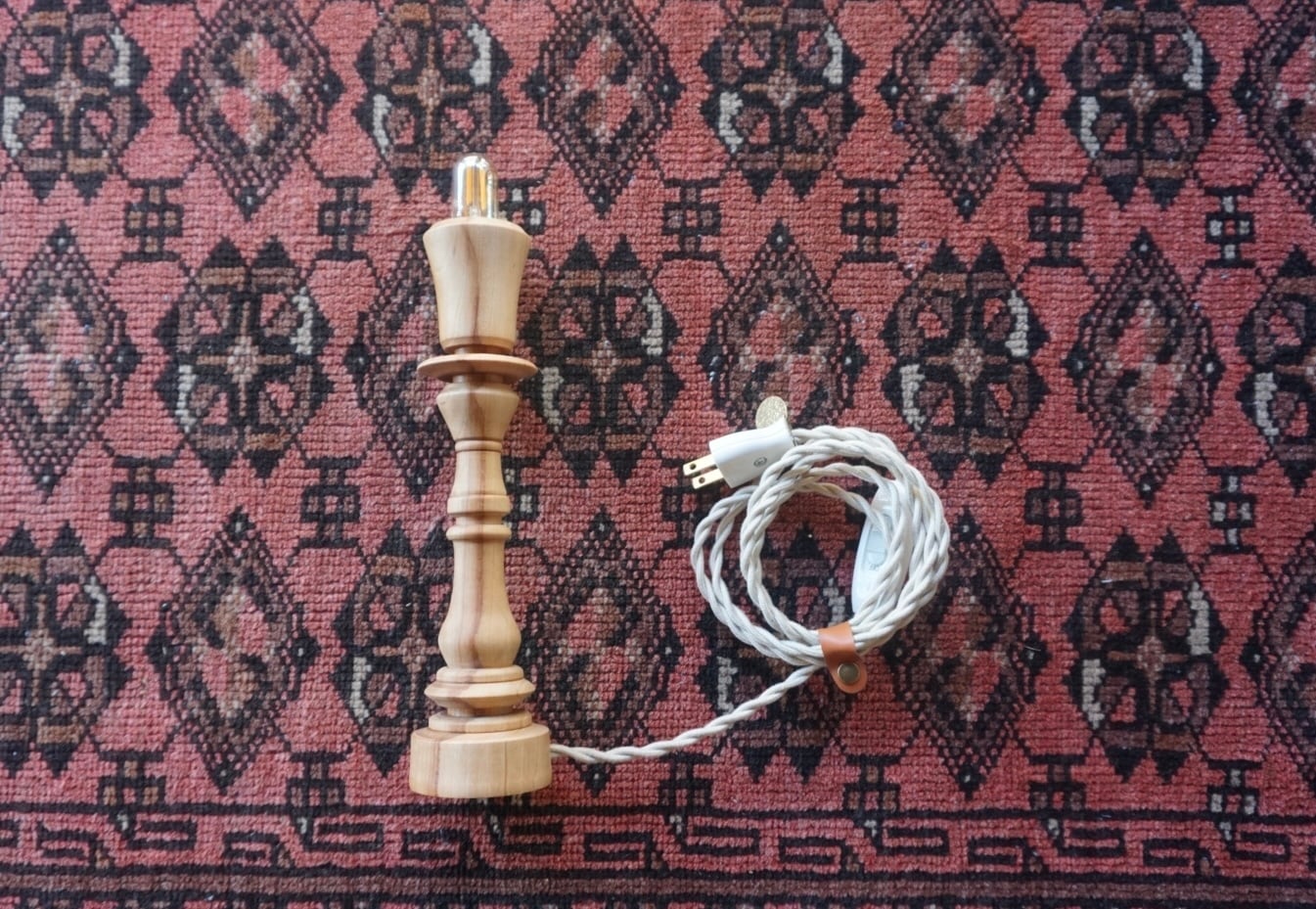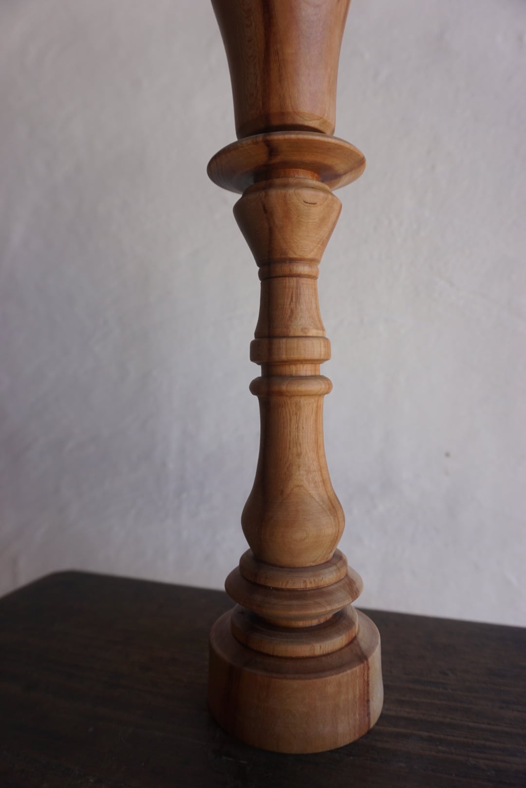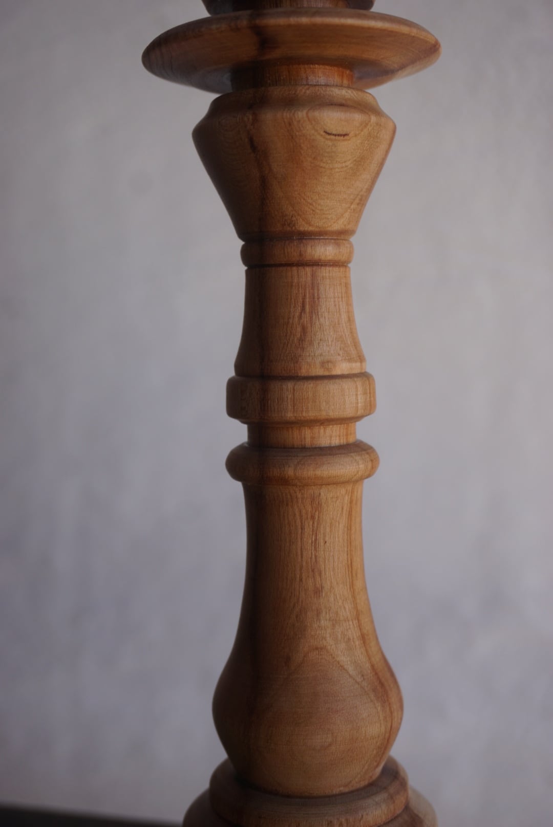 ウッドターニングで仕上げた桜の燭台テーブルランプ。