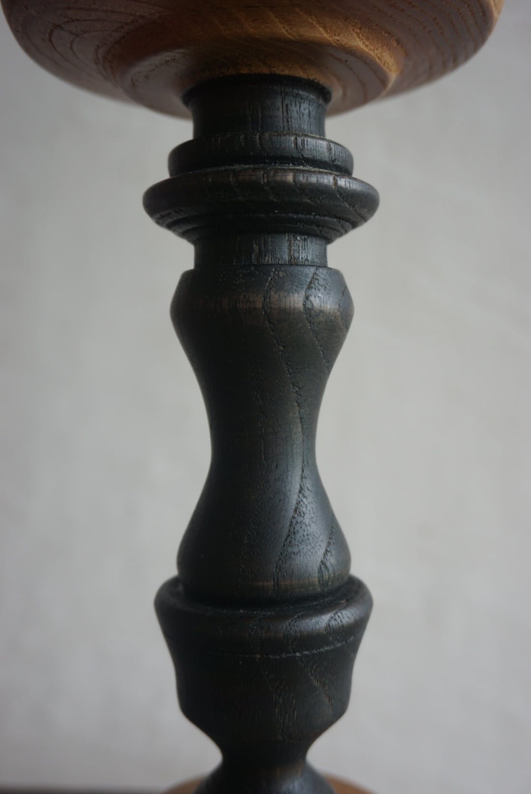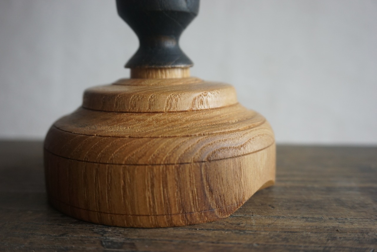 ウッドターニングによる手加工で成形し、シンプルながらも存在感のあるデザインに仕上げました。