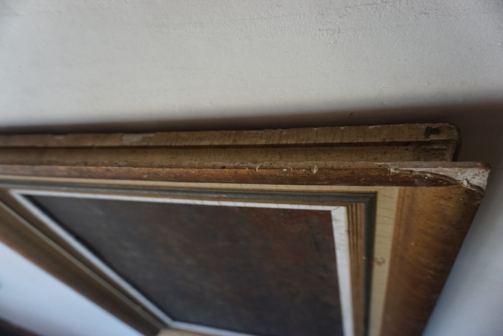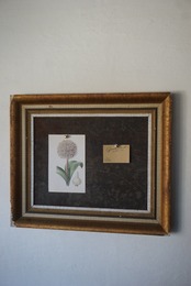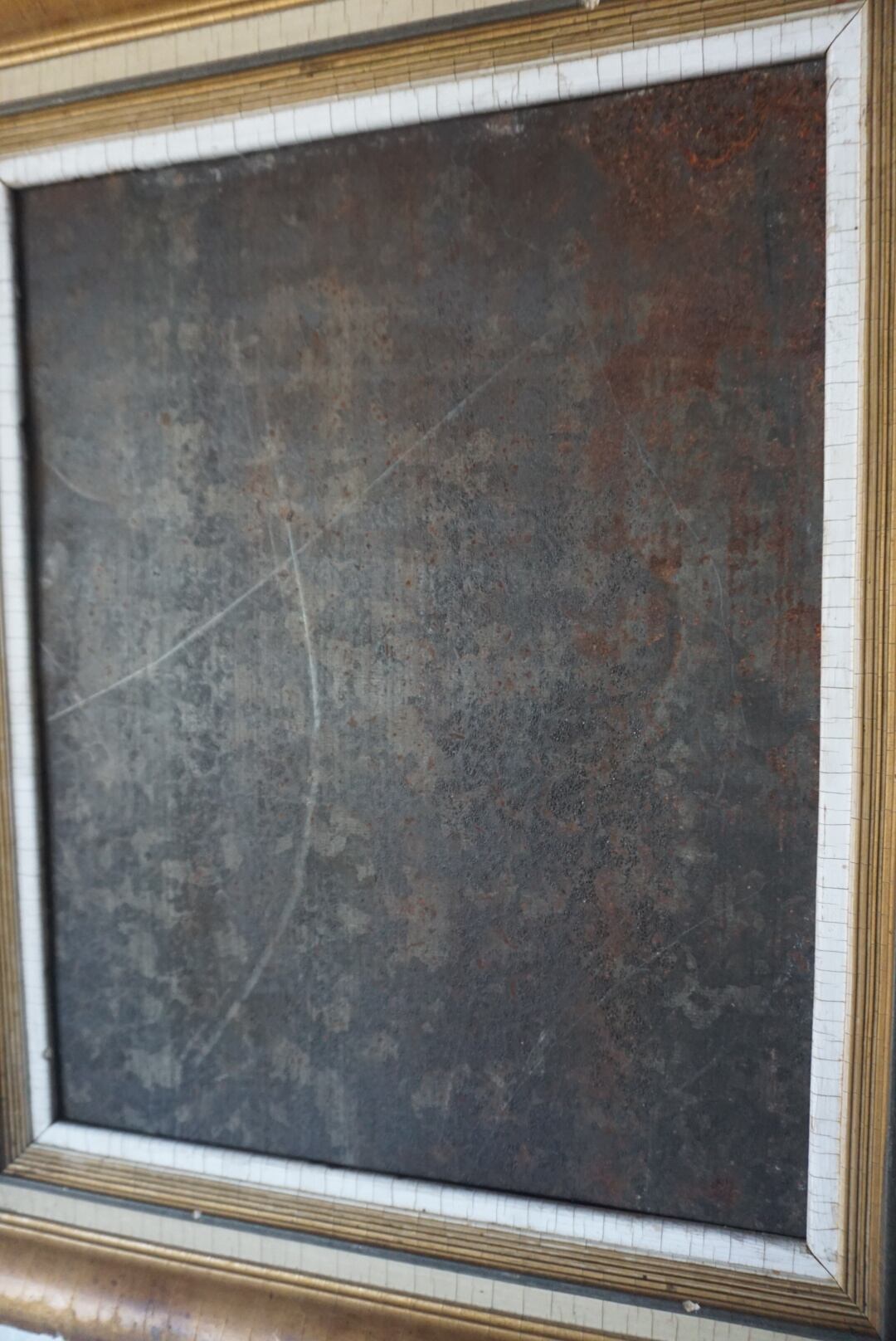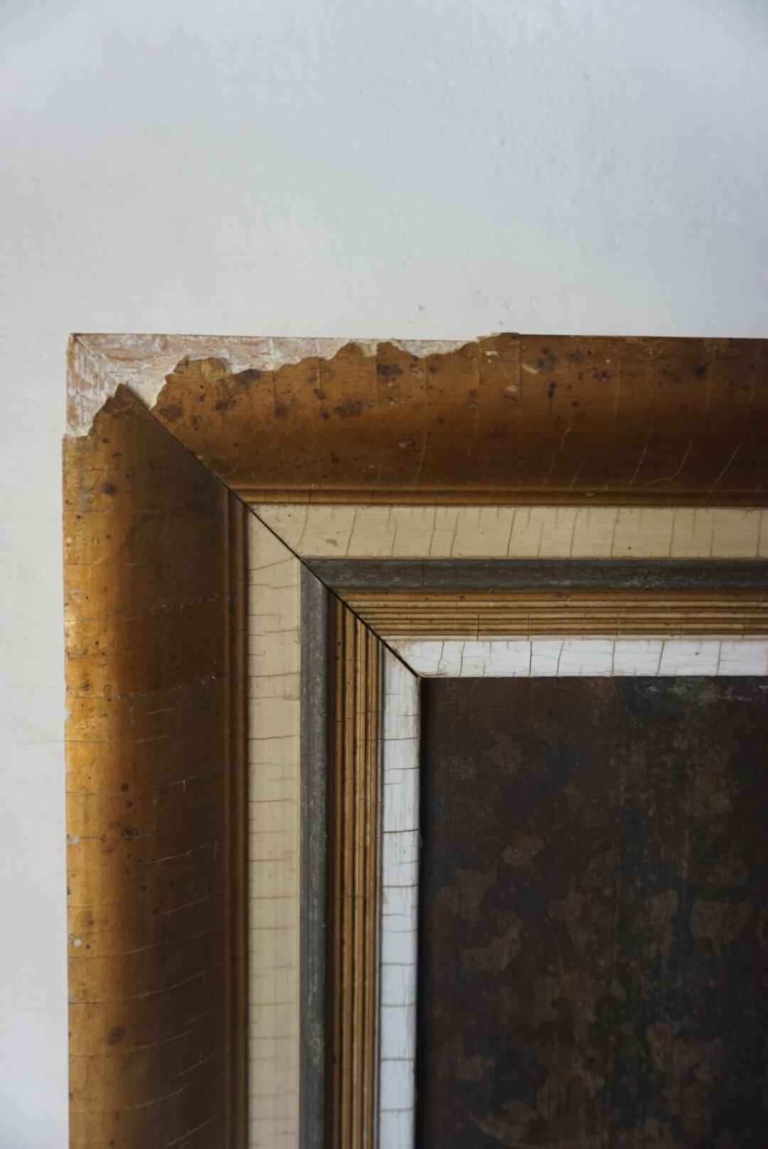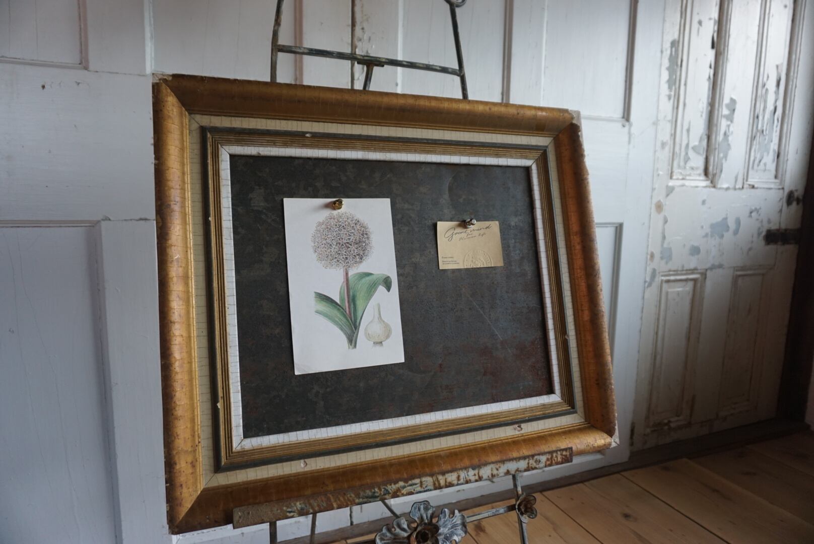 アンティーク額縁と経年変化したブリキ板のサインボードです。
