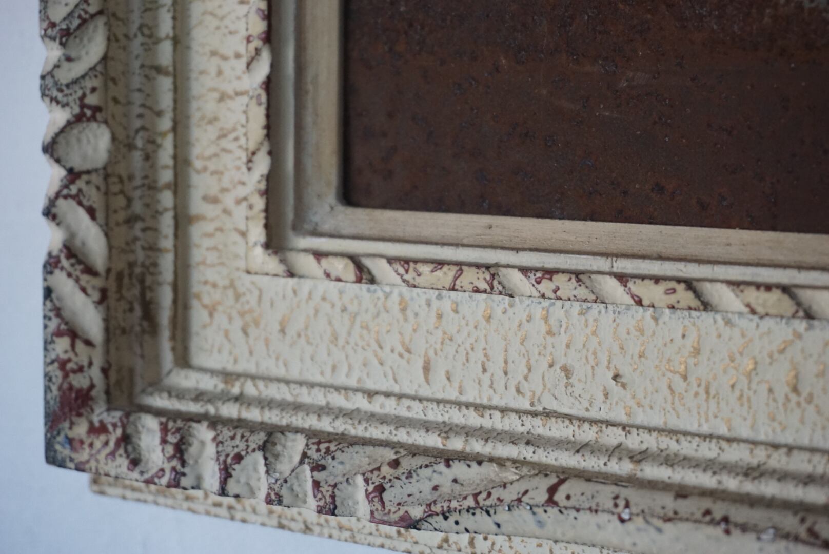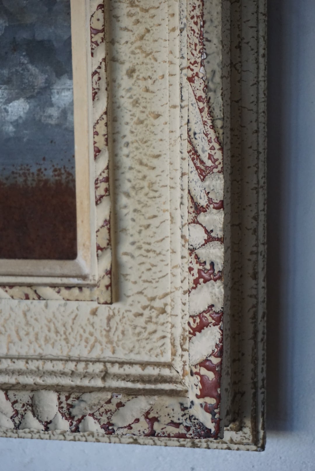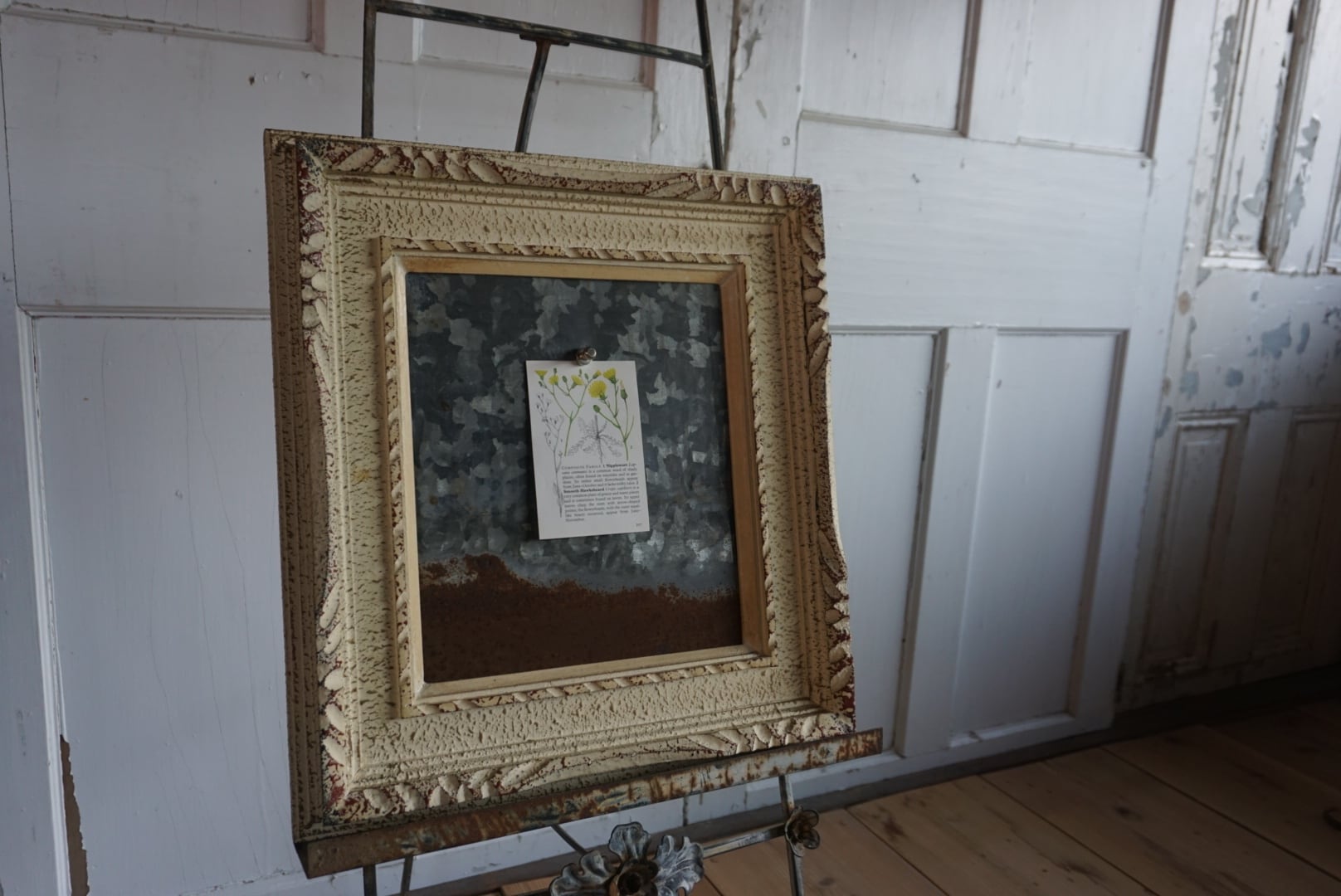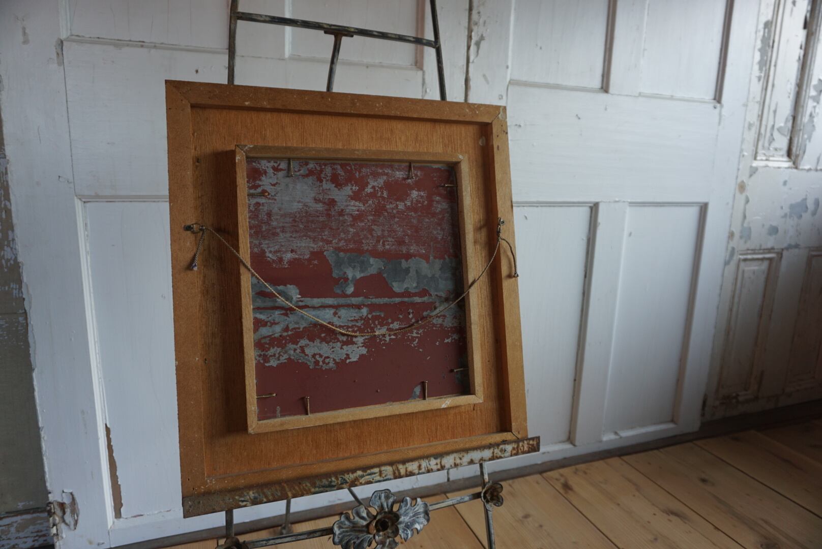 アンティーク額縁と経年変化したブリキ板のサインボードです。