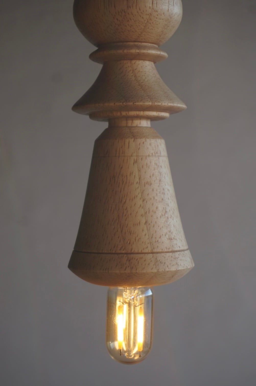 ウッドターニングで丁寧に削り出した、ブナ材のペンダントライト。