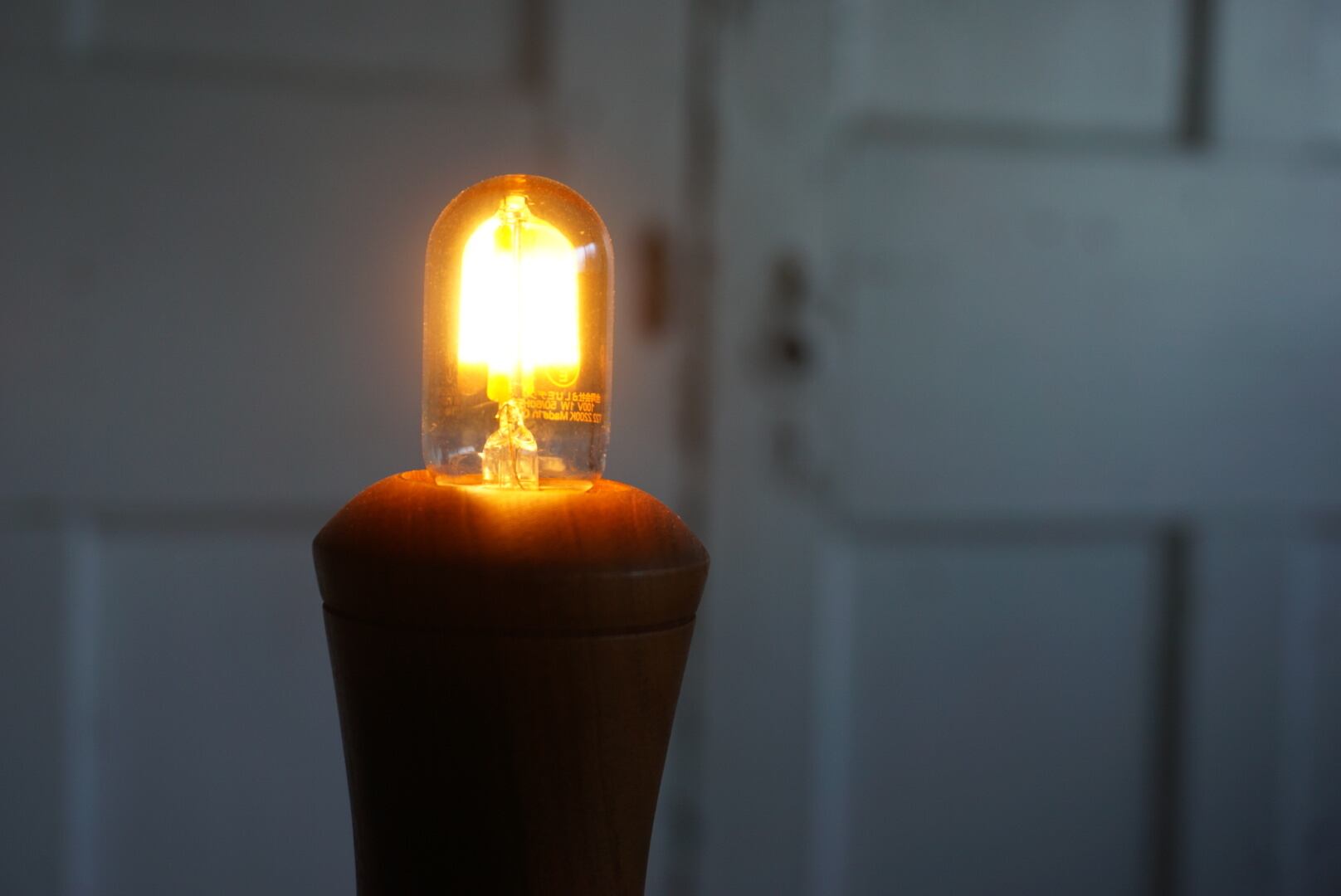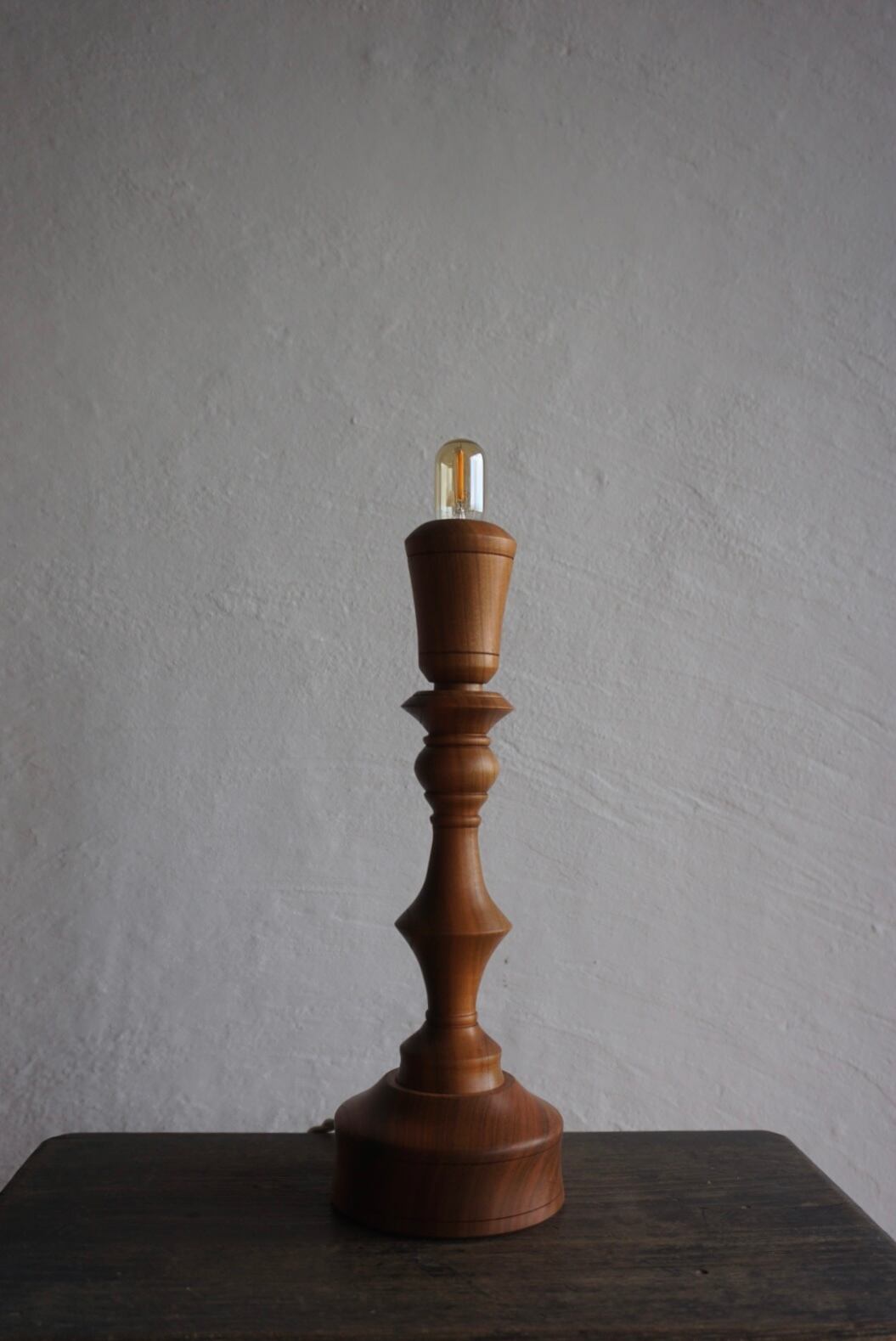 ウッドターニングで仕上げた桜の燭台テーブルランプ。