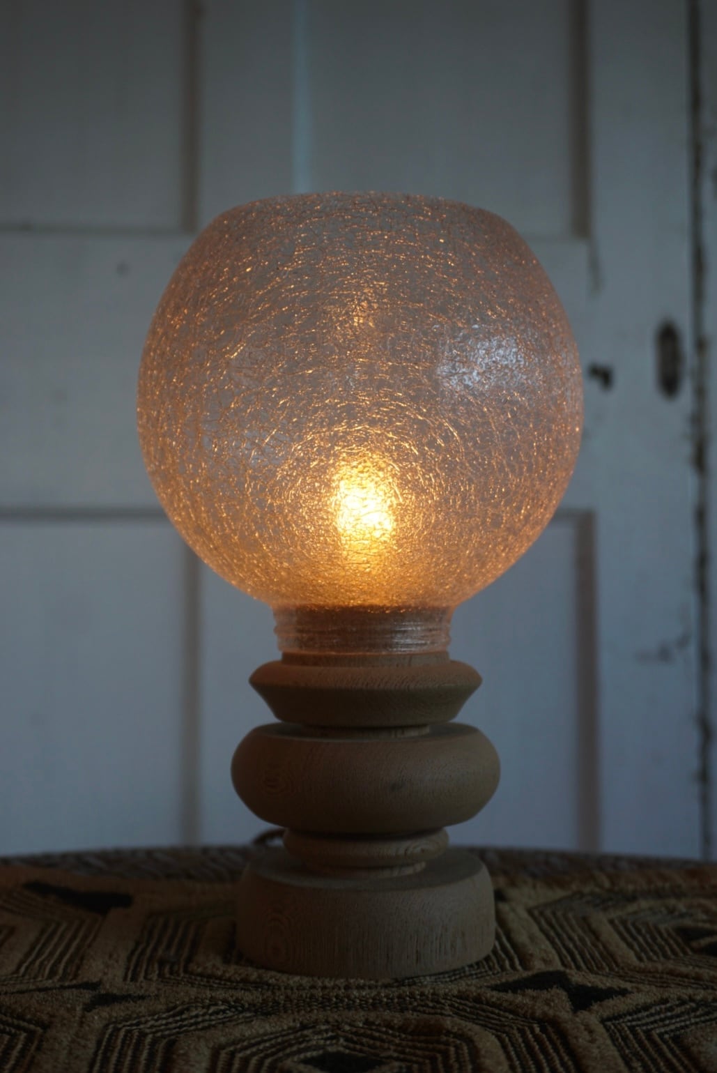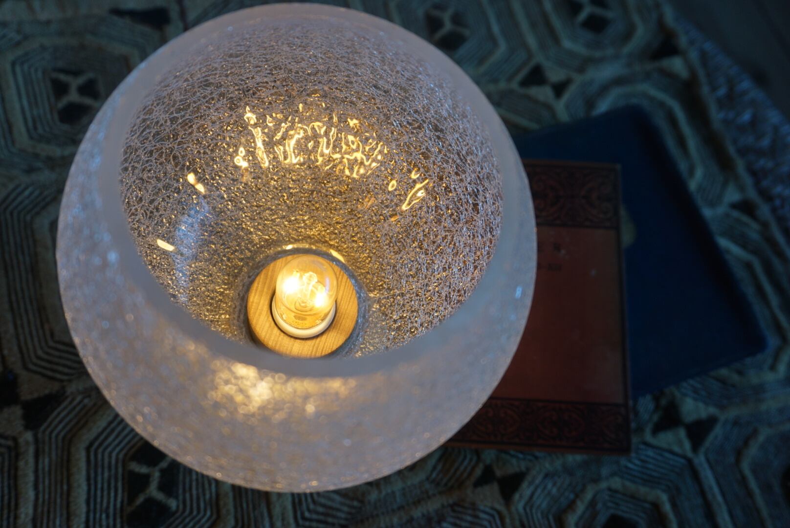 シェードにはアンティークのガラスシェードを採用し、柔らかな光が空間を優しく包み込みます。