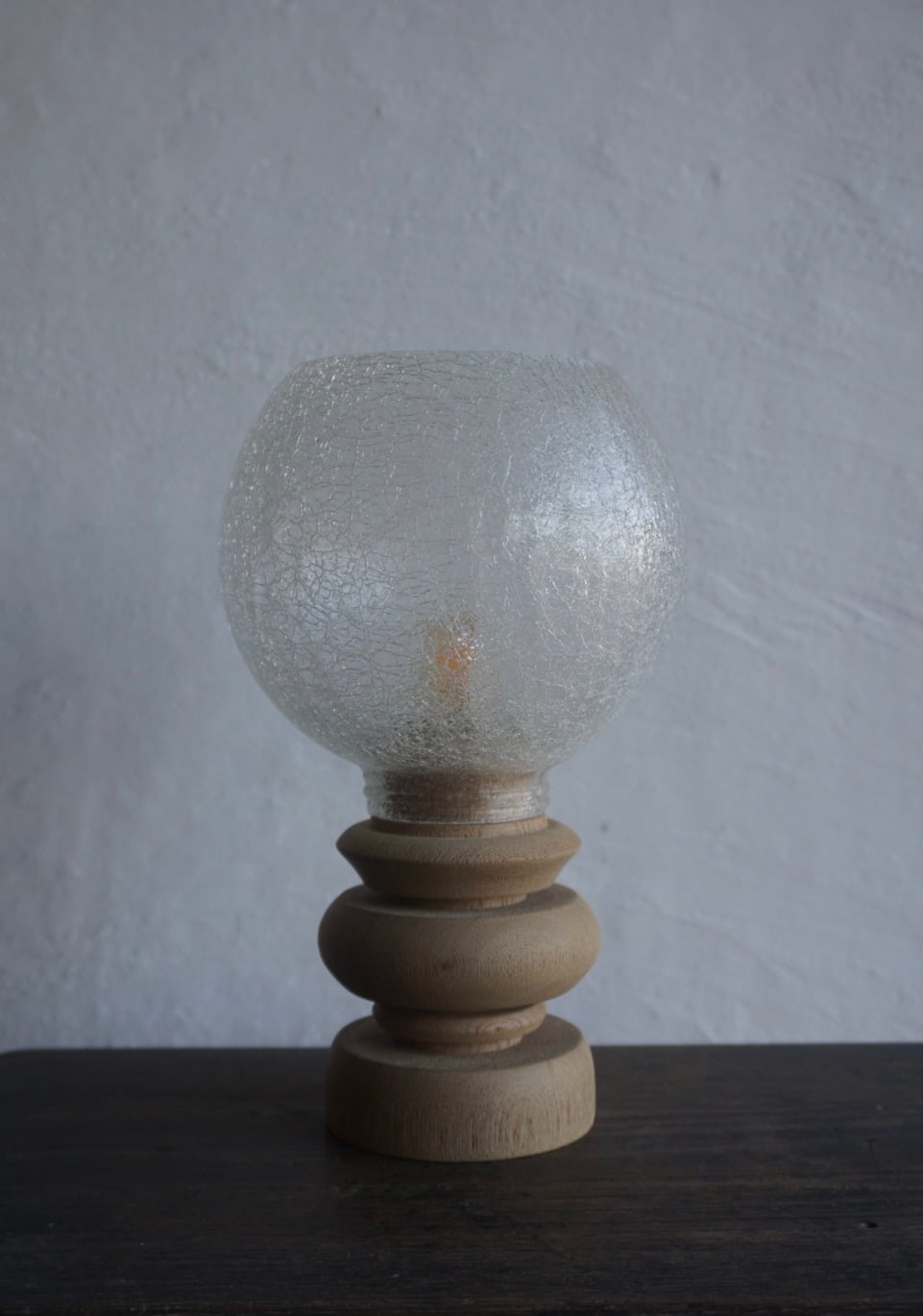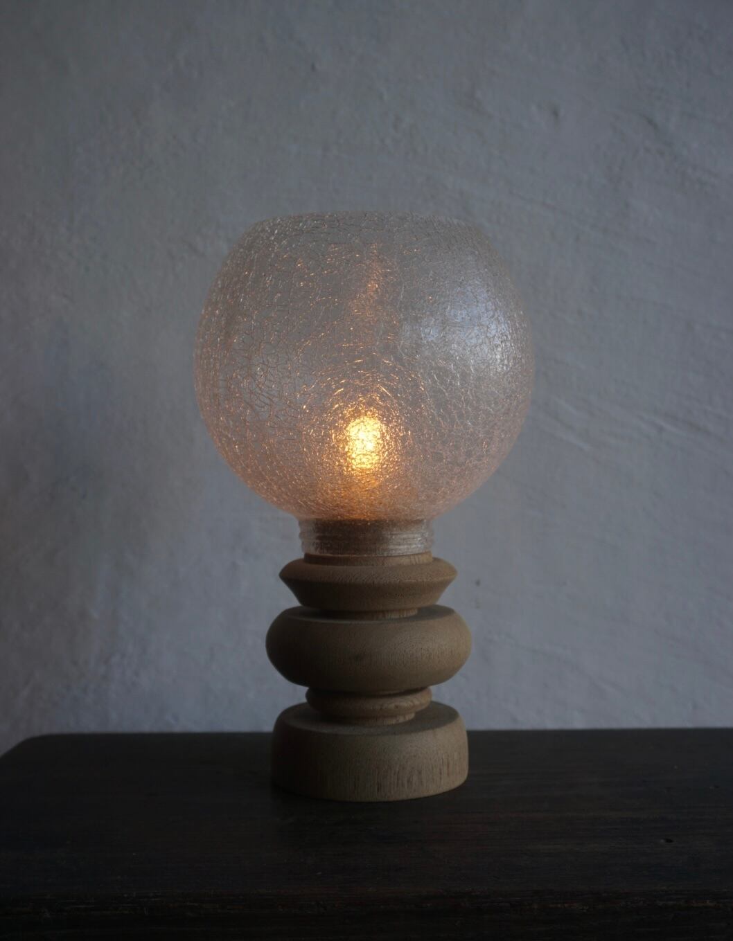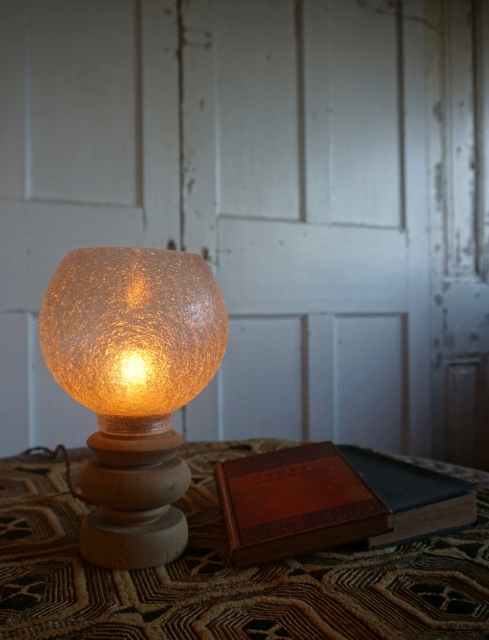 天然木の温もりとクラシカルなガラスシェードが調和した、上質なテーブルランプ。