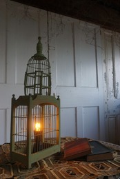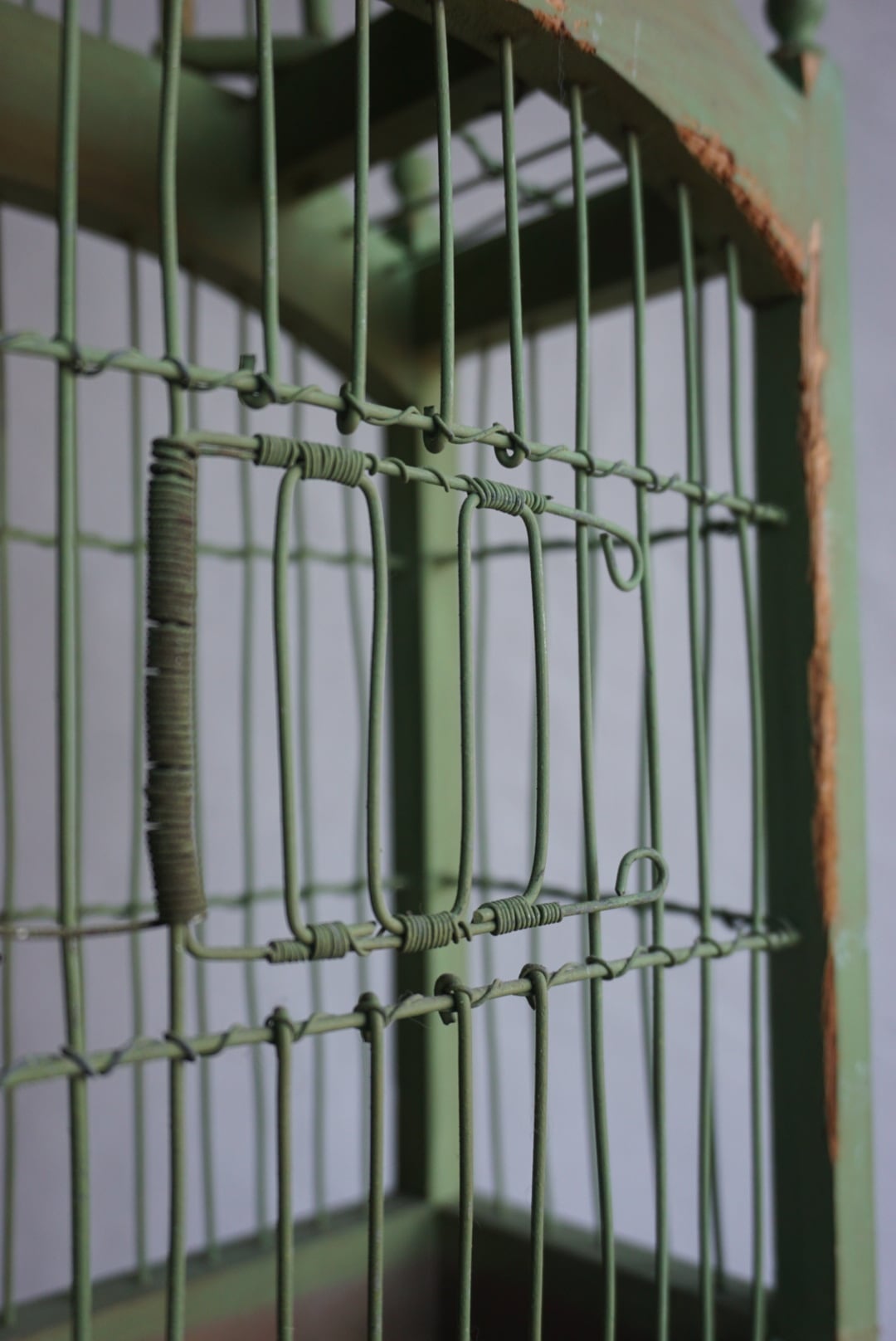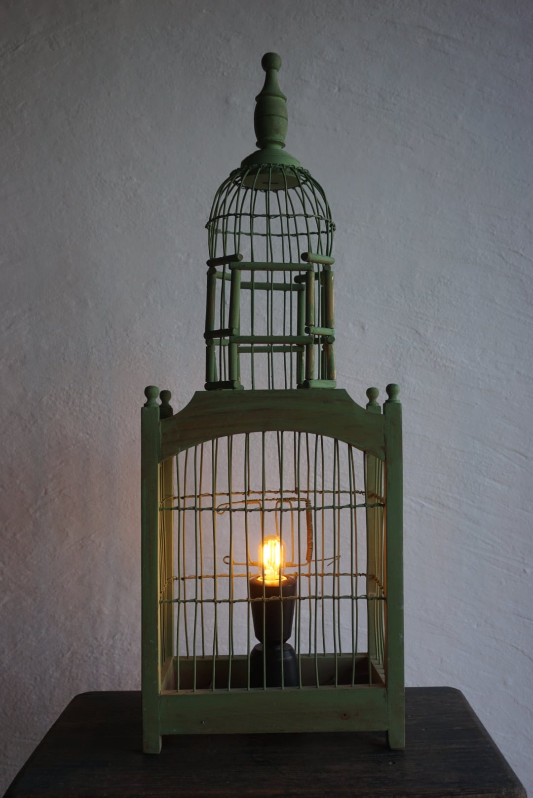 褪せたグリーンの鳥籠が、長い時間を感じさせる落ち着いた灯りを届けます。