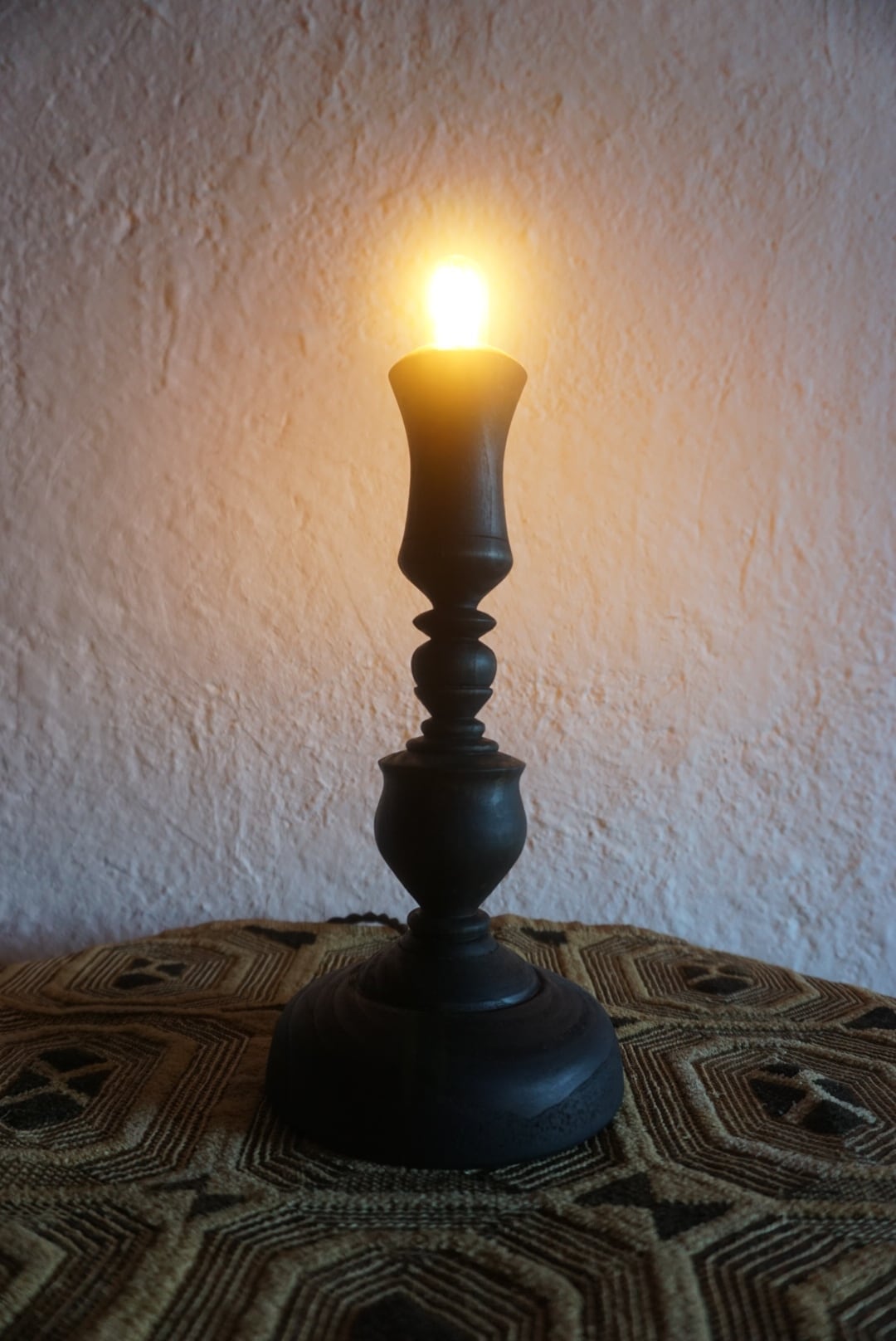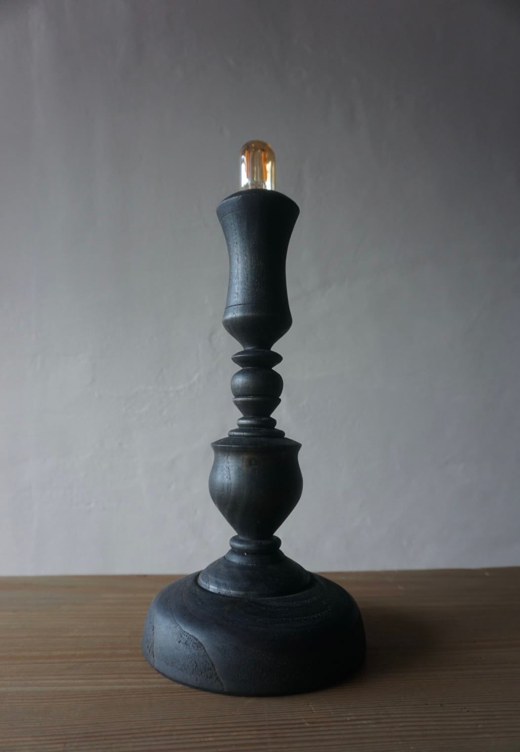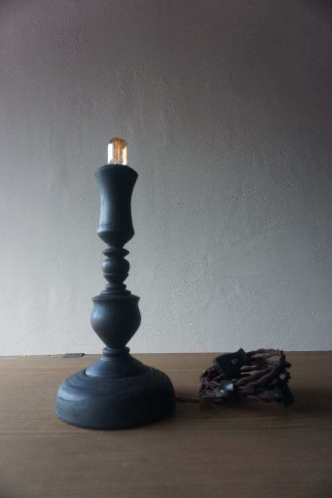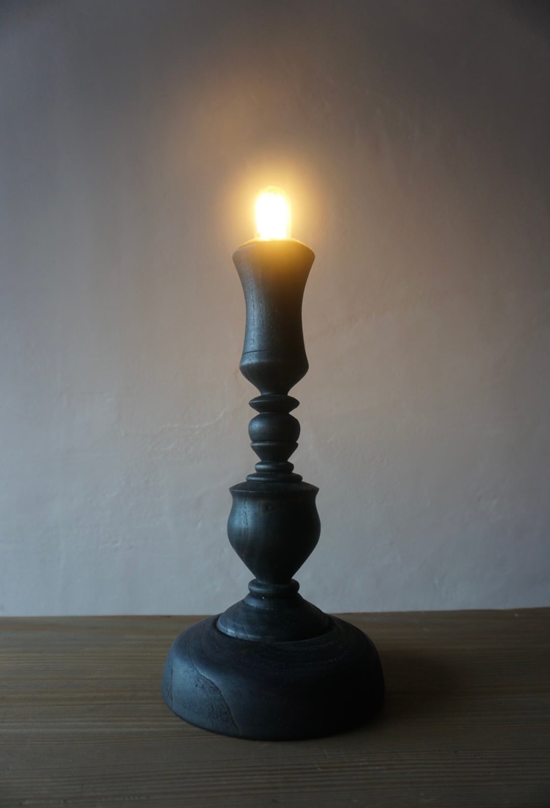 栗の木を使った燭台テーブルランプです。