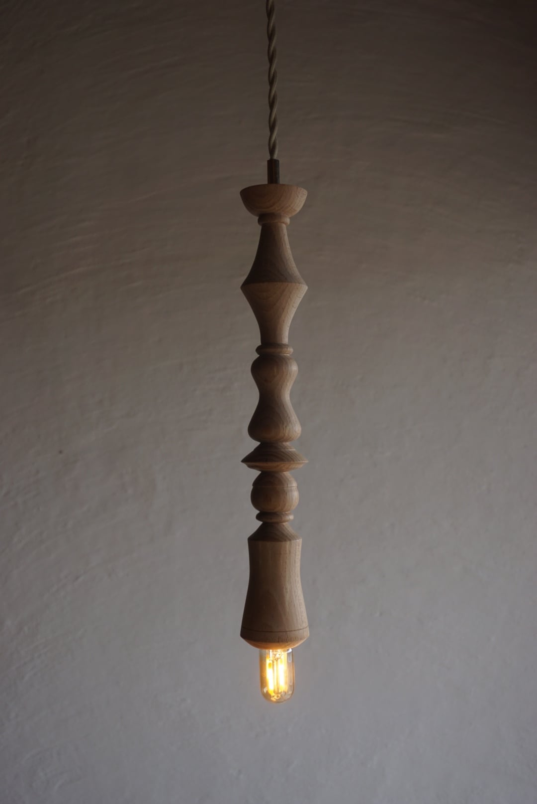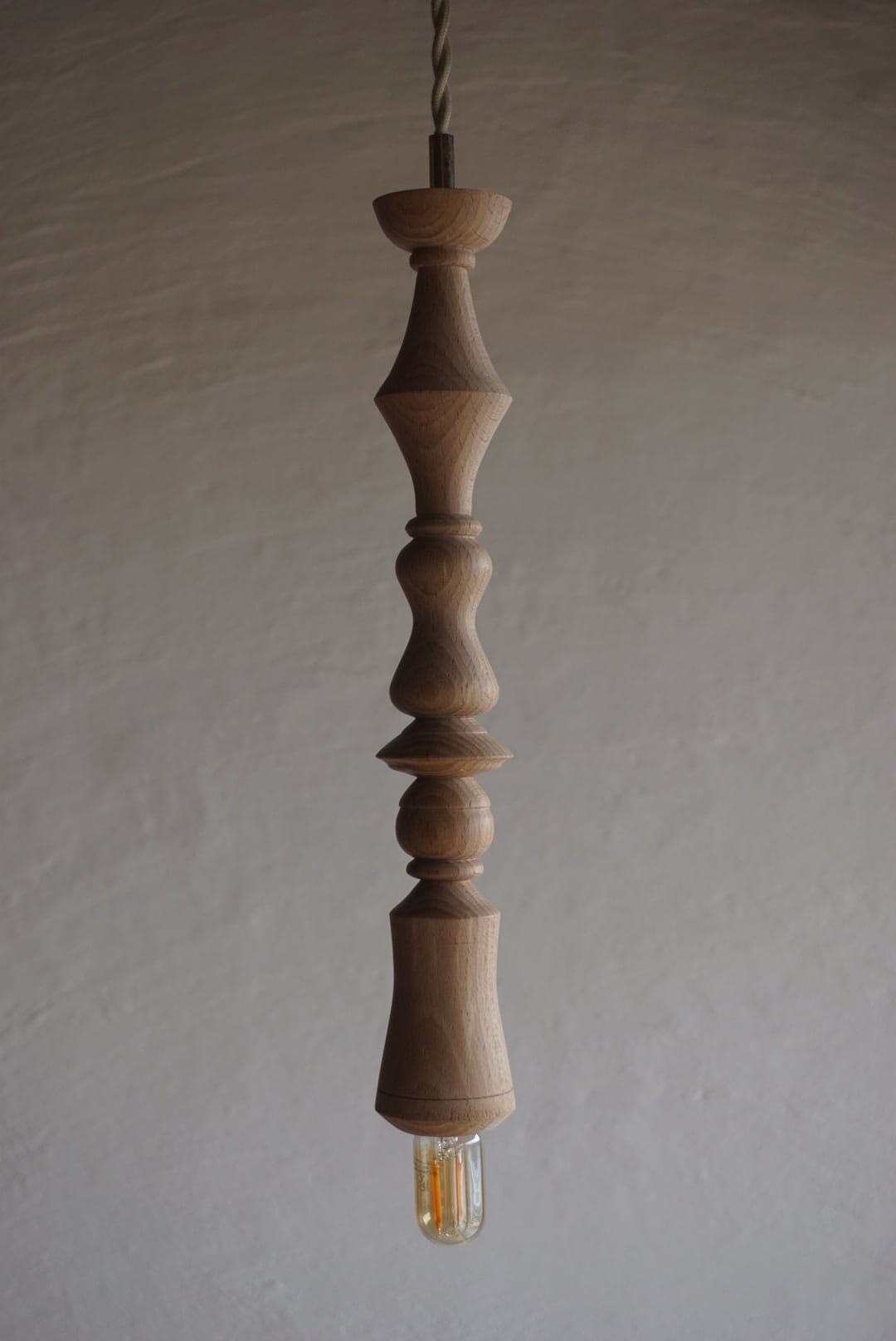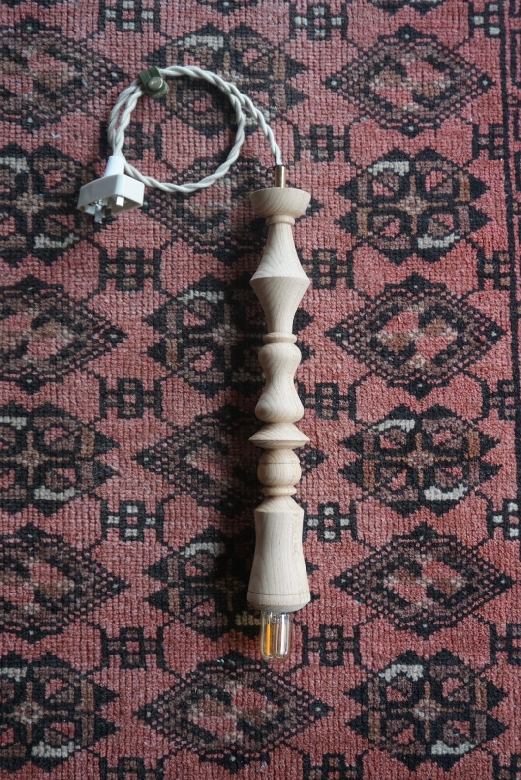 ウッドターニングで丁寧に削り出した、ビーチ材のペンダントライト。
