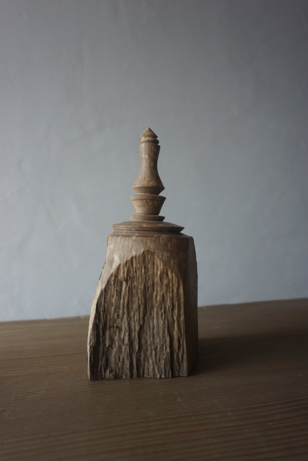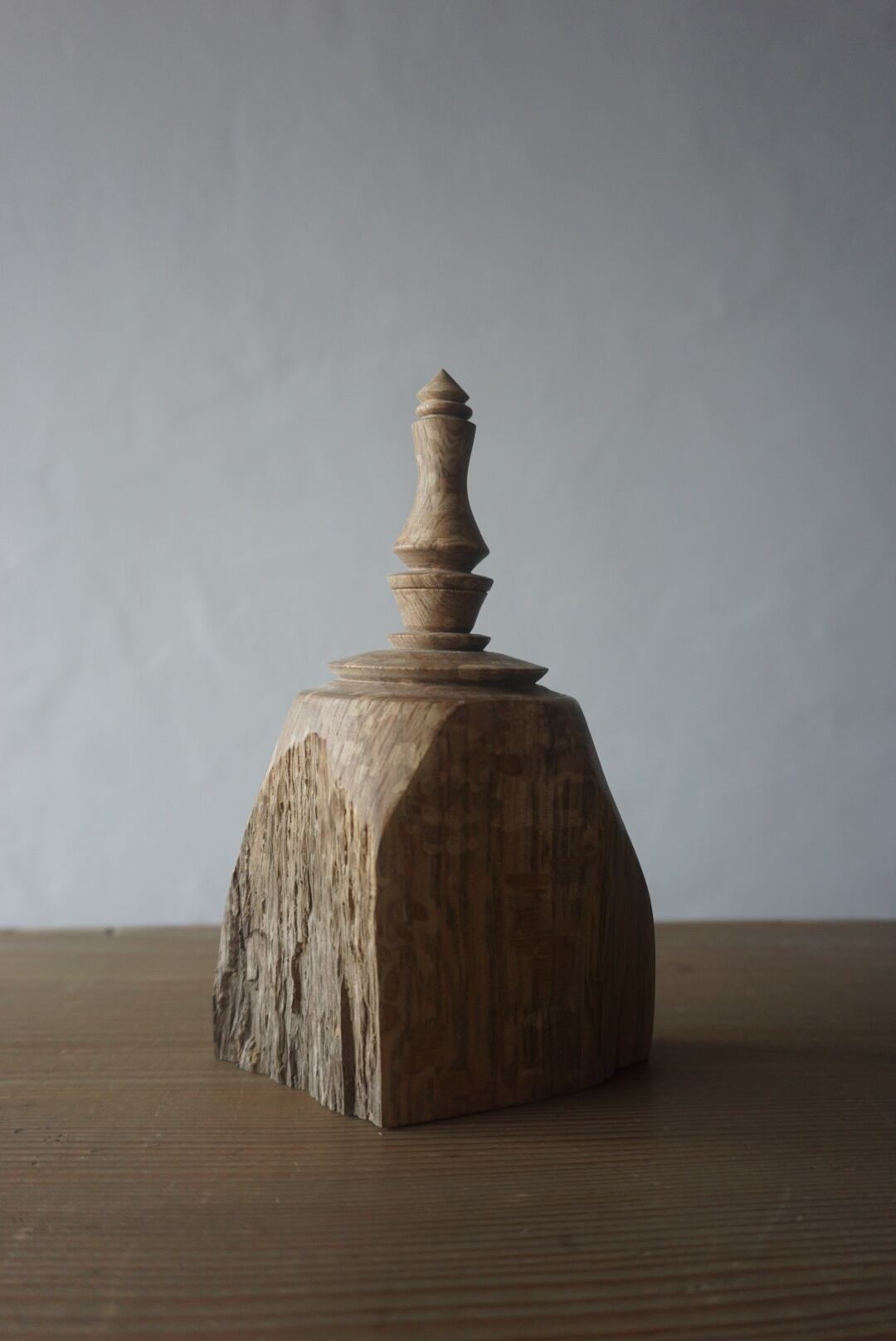 自然の木肌を残した部分と、丁寧に削り出した面との対比が、
