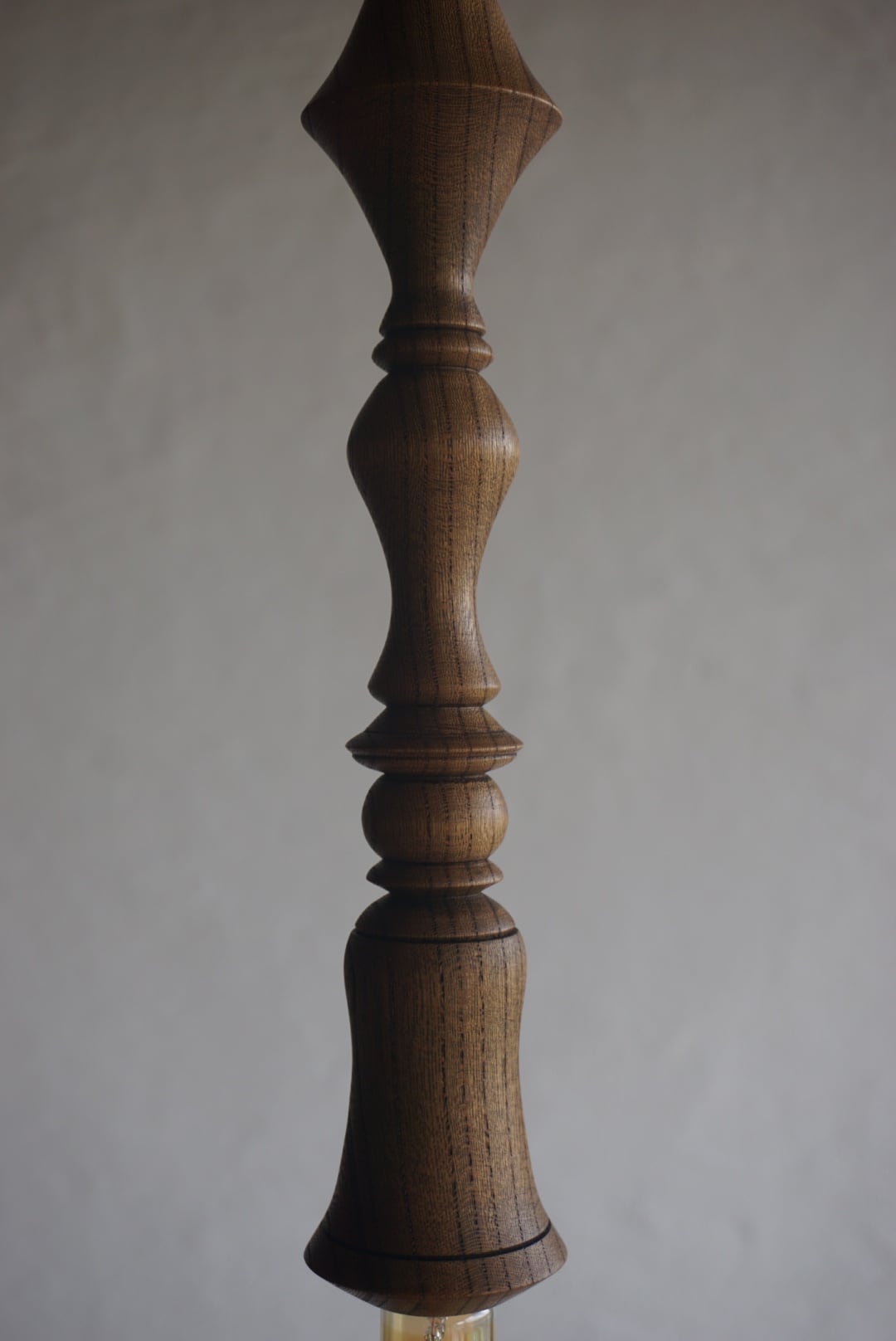 ウッドターニングによる端正なフォルムと、力強く美しい木目が空間に静かな存在感を添えます。