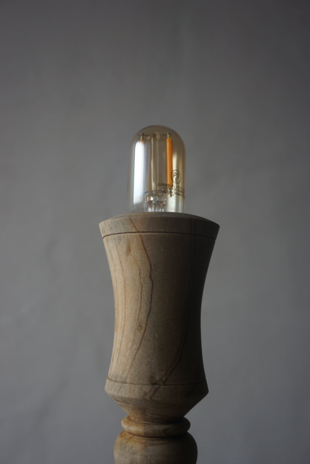 ウッドターニングで仕上げた桜の燭台テーブルランプ。