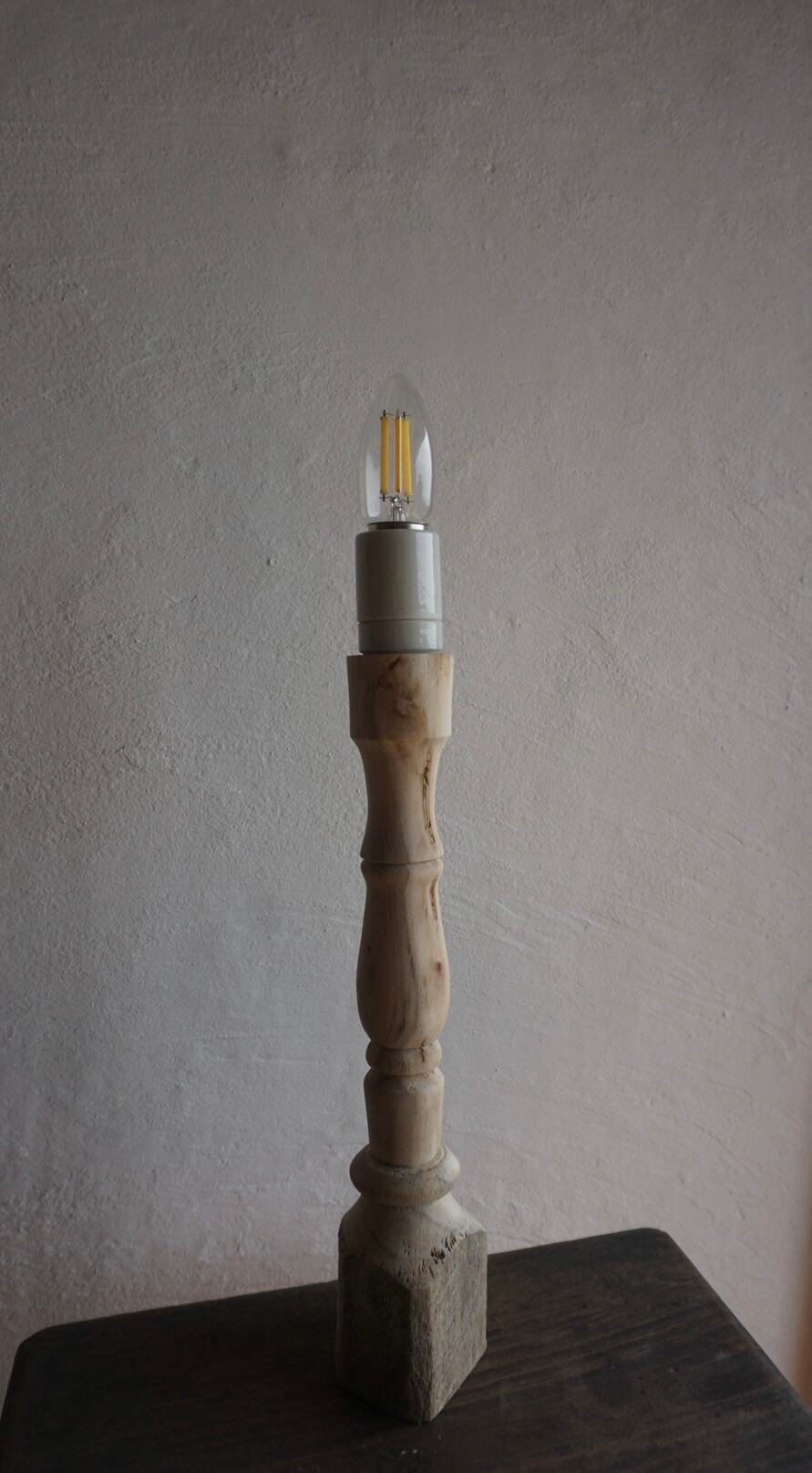 ウッドターニングで仕上げた白木のテーブルランプです。