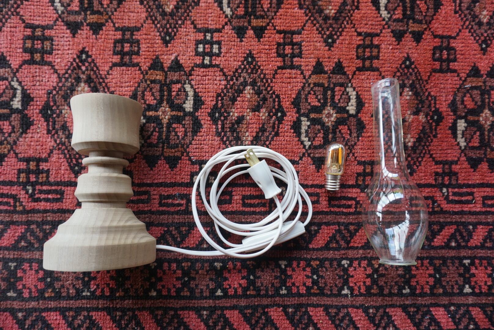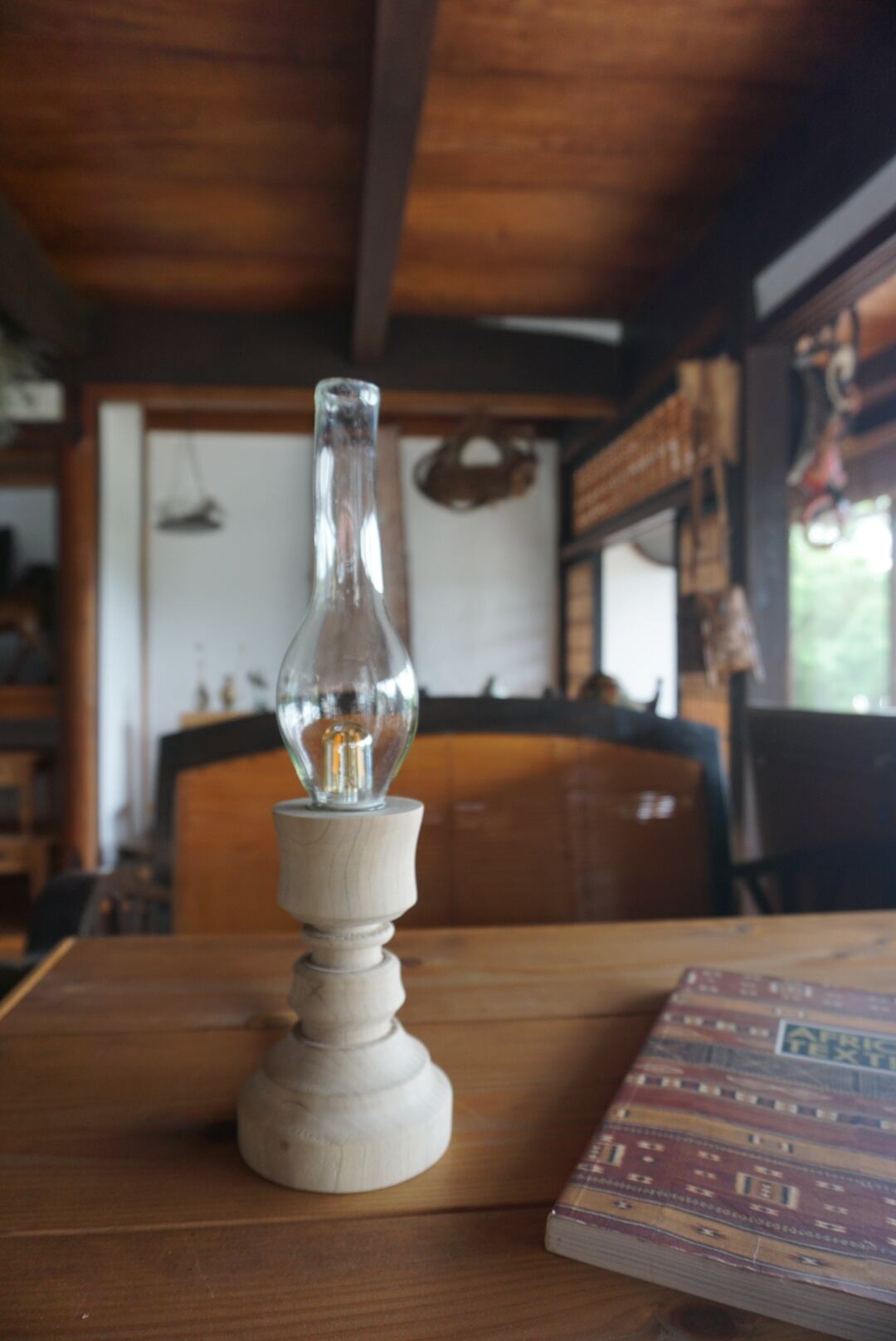 ウッドターニングで仕上げたトロフィーのような佇まいのテーブルランプです。
