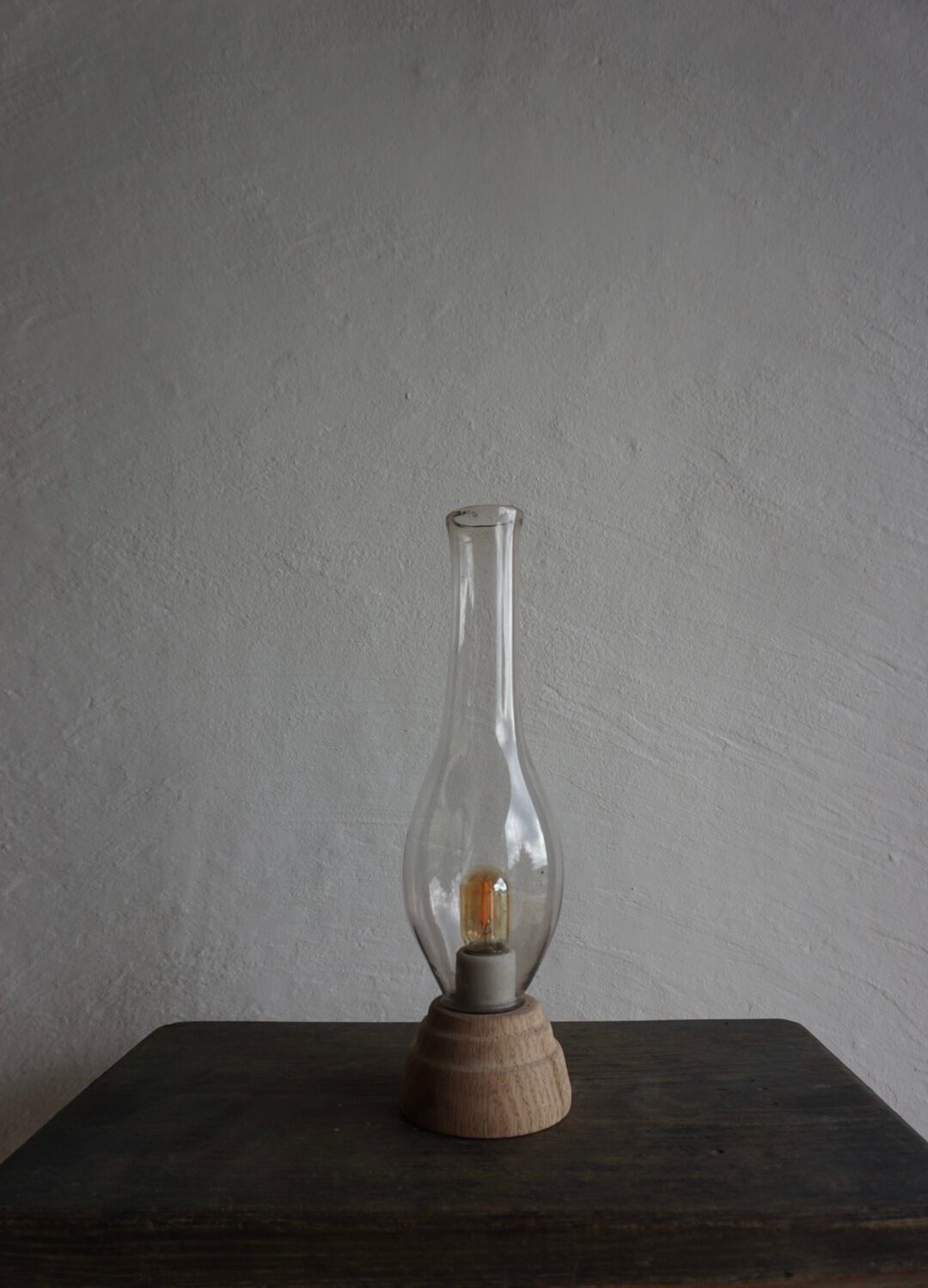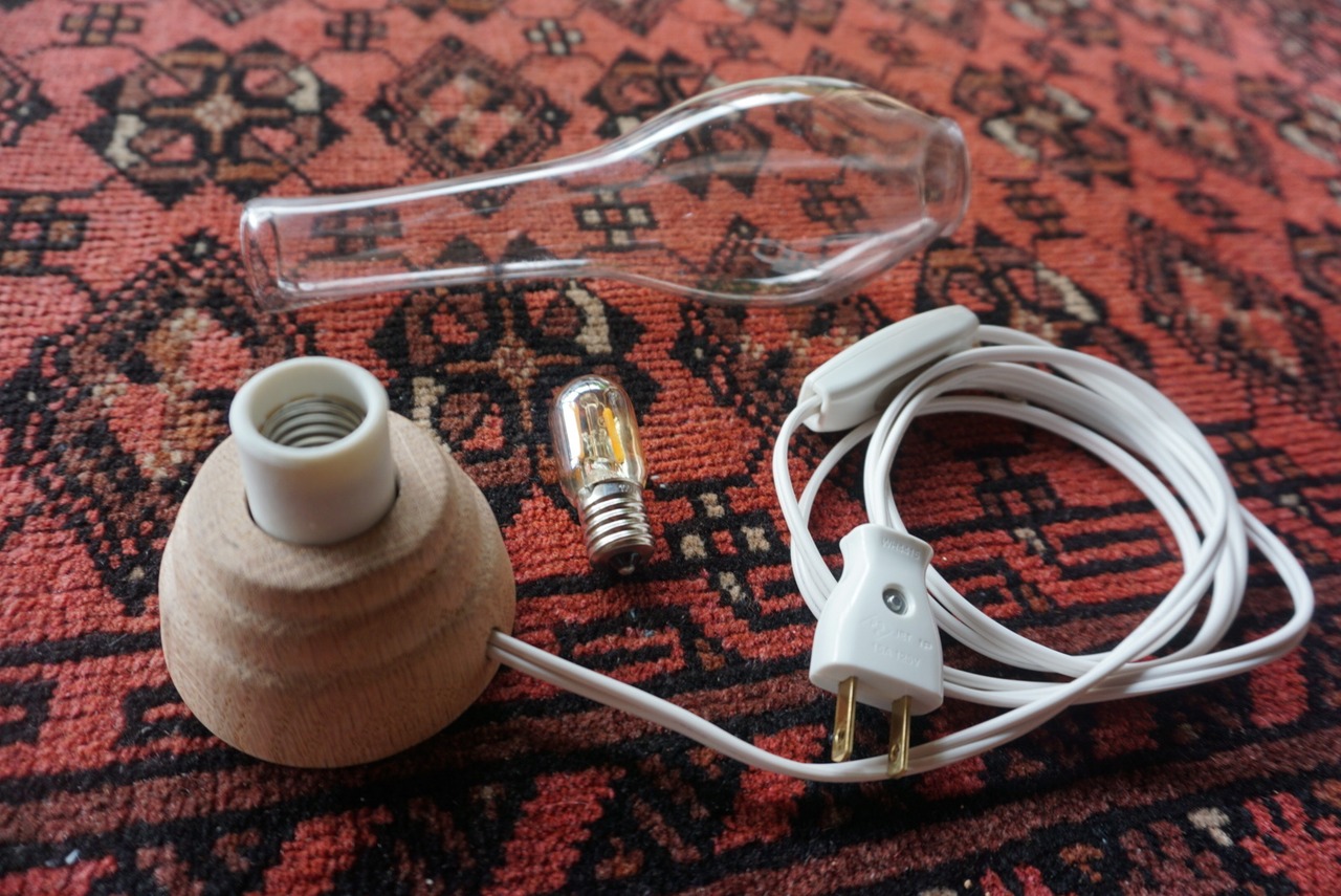 シェードに古道具のオイルランプで使われていたアンティークのガラスをかぶせています。