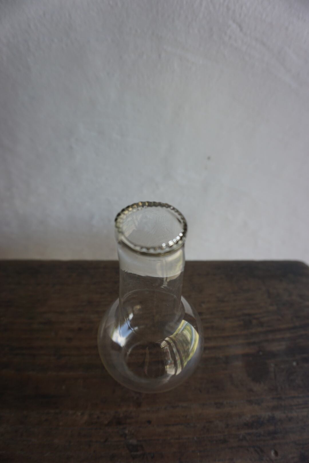 シェードに古道具のアンティークのホヤガラスをかぶせています。