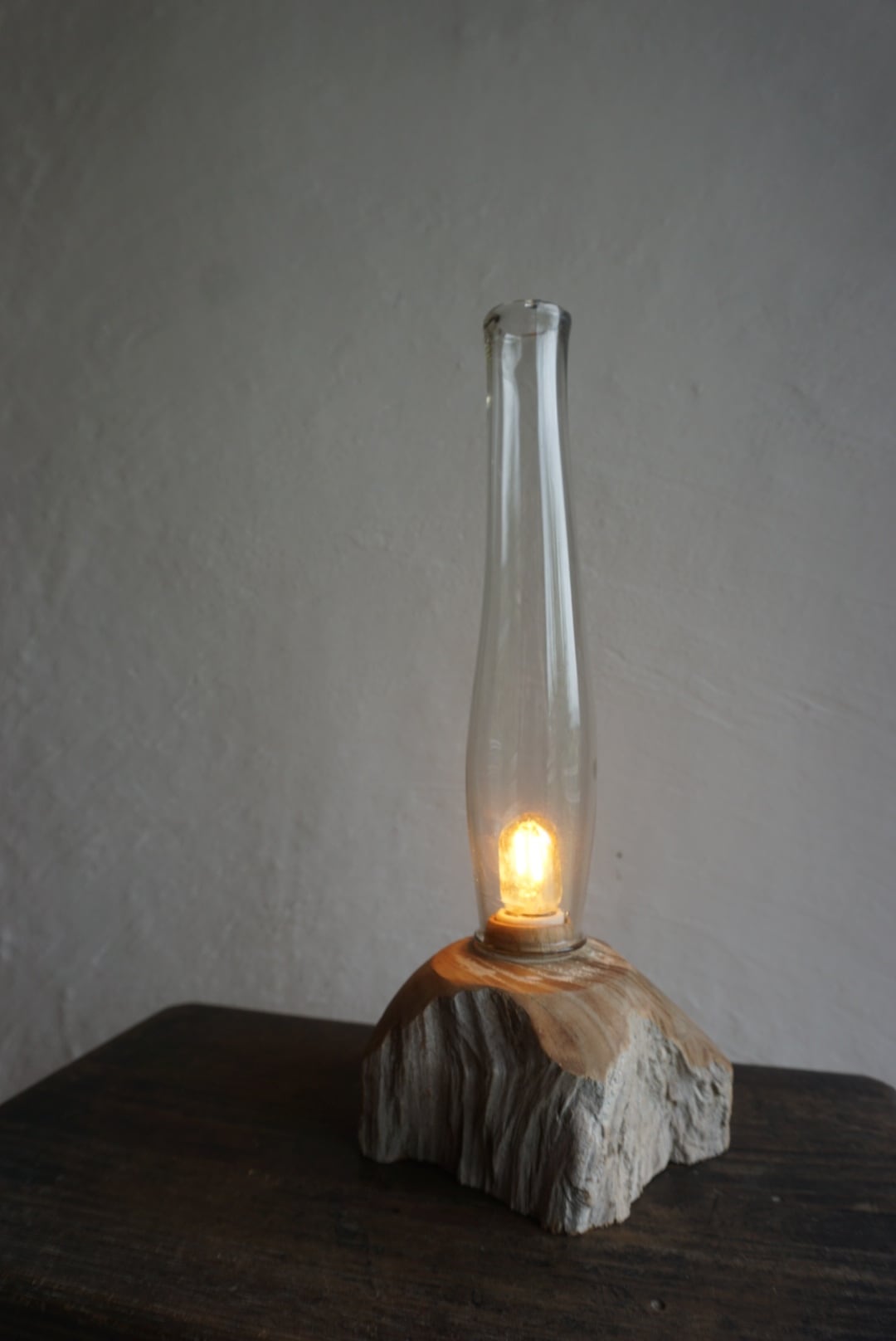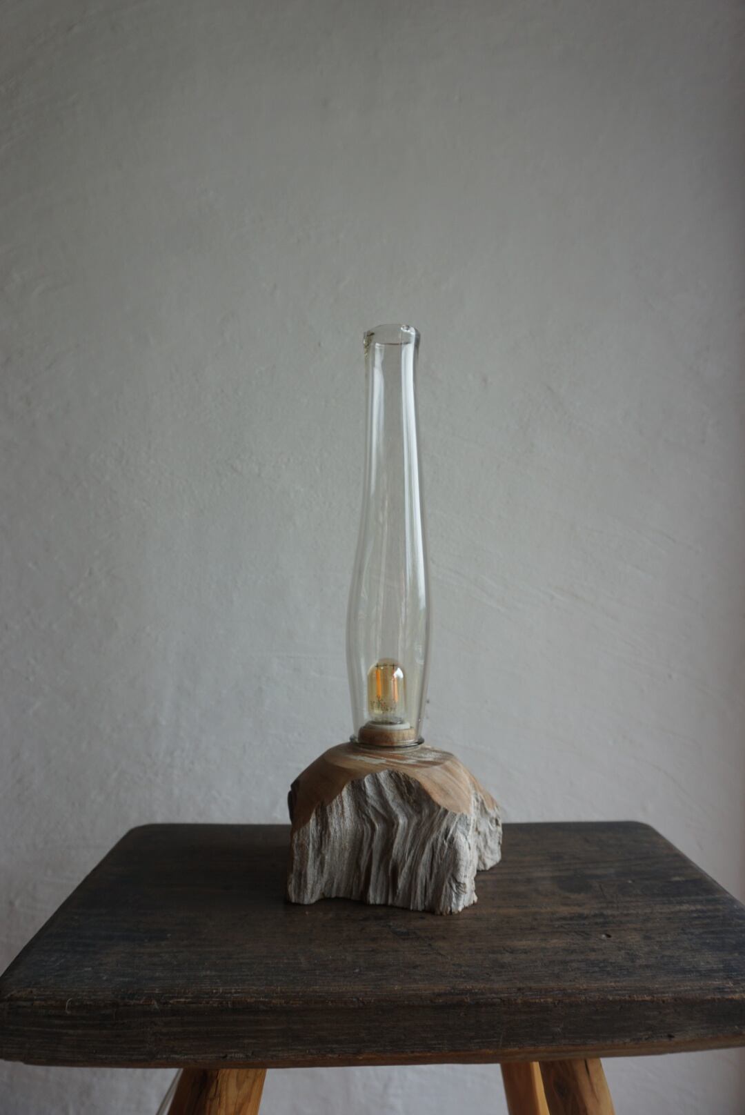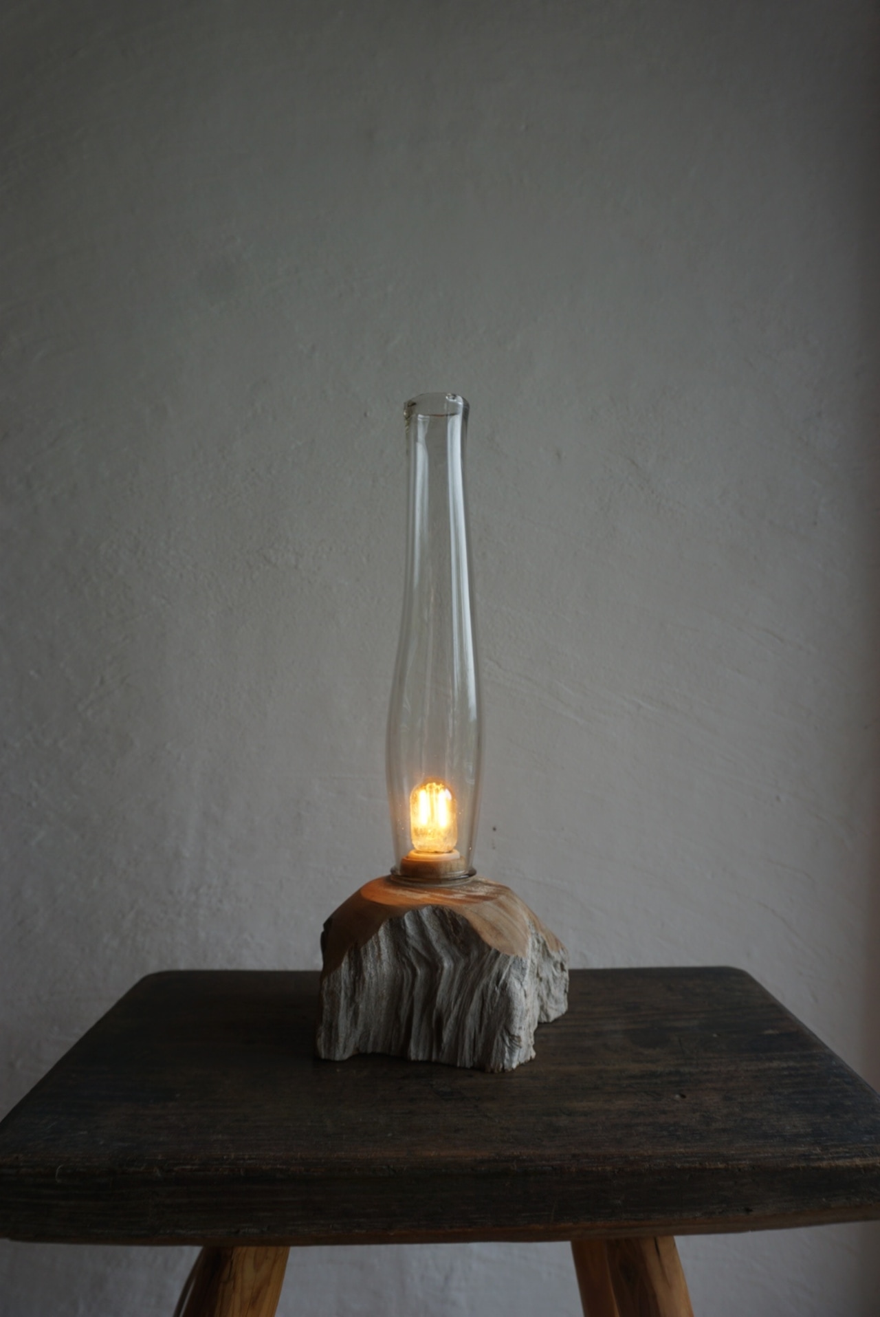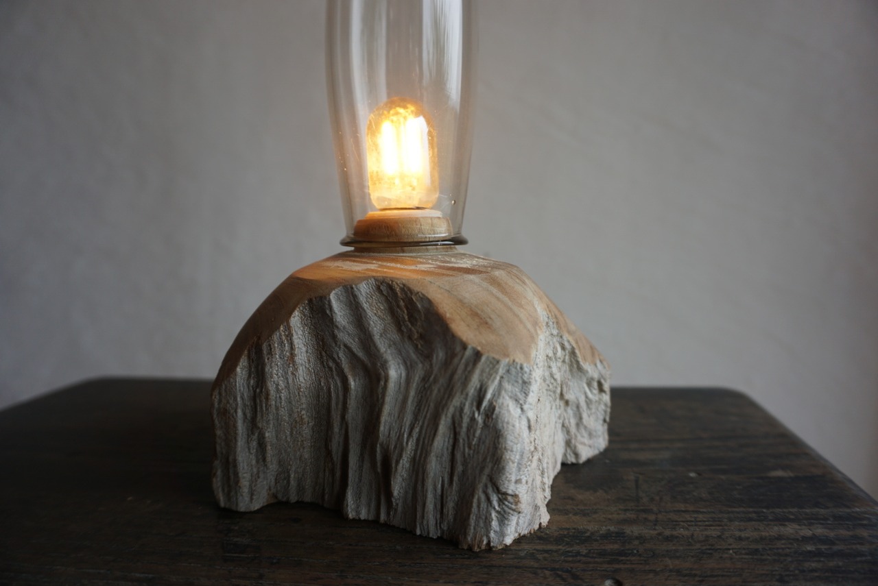 ウッドターニングで仕上げた枯木のテーブルランプです。