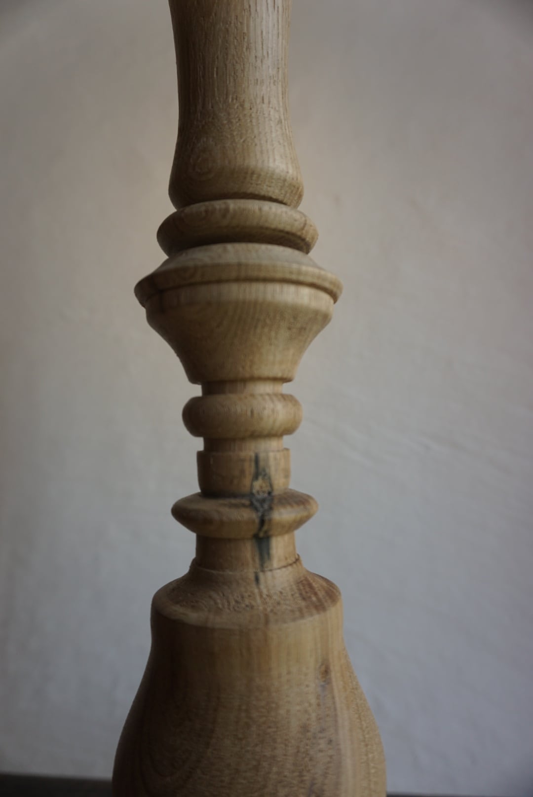 ウッドターニングで仕上げた栗の燭台テーブルランプ。
