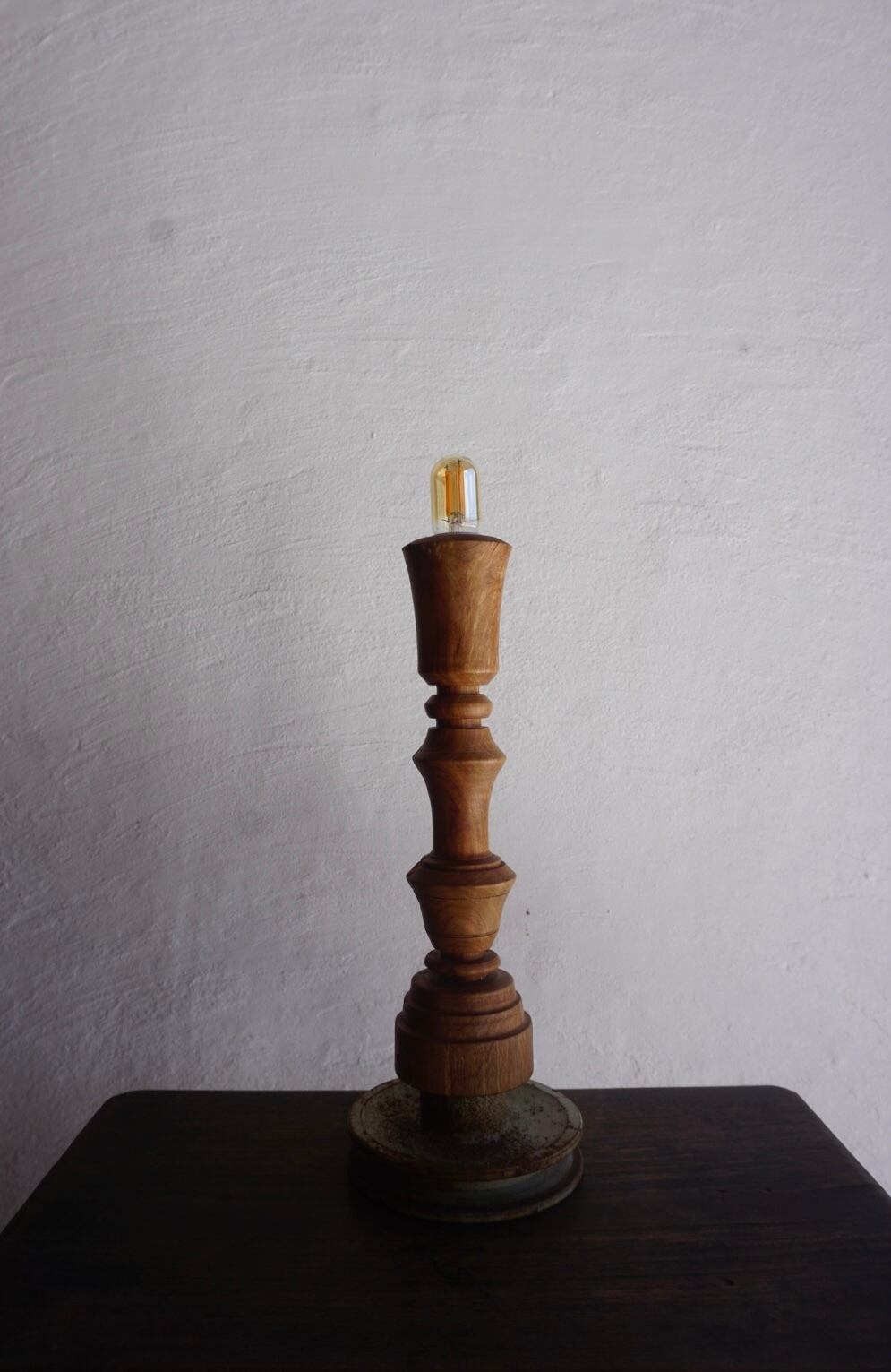 ウッドターニングで仕上げた桜の木と、歴史を感じさせるアンティークアイアンの土台が融合したテーブルランプです。